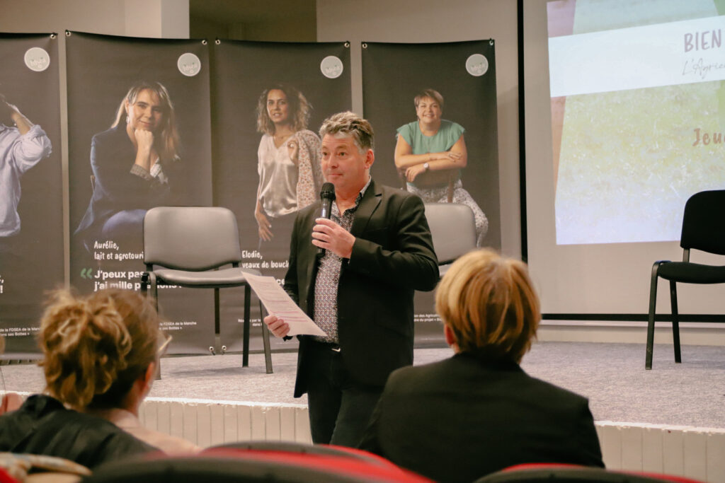 Le jeudi 6 mars 2025, a eu lieu le lancement officiel du projet au Lycée Curie-Corot de Saint-Lô auprès du Grand Public, des parlementaires et élus de la Manche, des partenaires, des structures d’emploi et de formation etc. Une présentation suivie d’une table ronde « entreprendre dans l’agriculture » en présence de Catherine FAIVRE-PIERRET, Vice-Présidente de la FNSEA et Présidente de la Commission Nationale des Agricultrices (CNA) animée par Florence GORON présidente de la section agricultrice de la FDSEA50 instigatrice du projet construit avec les membres de sa section.